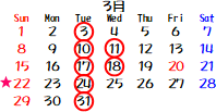 3月は、11